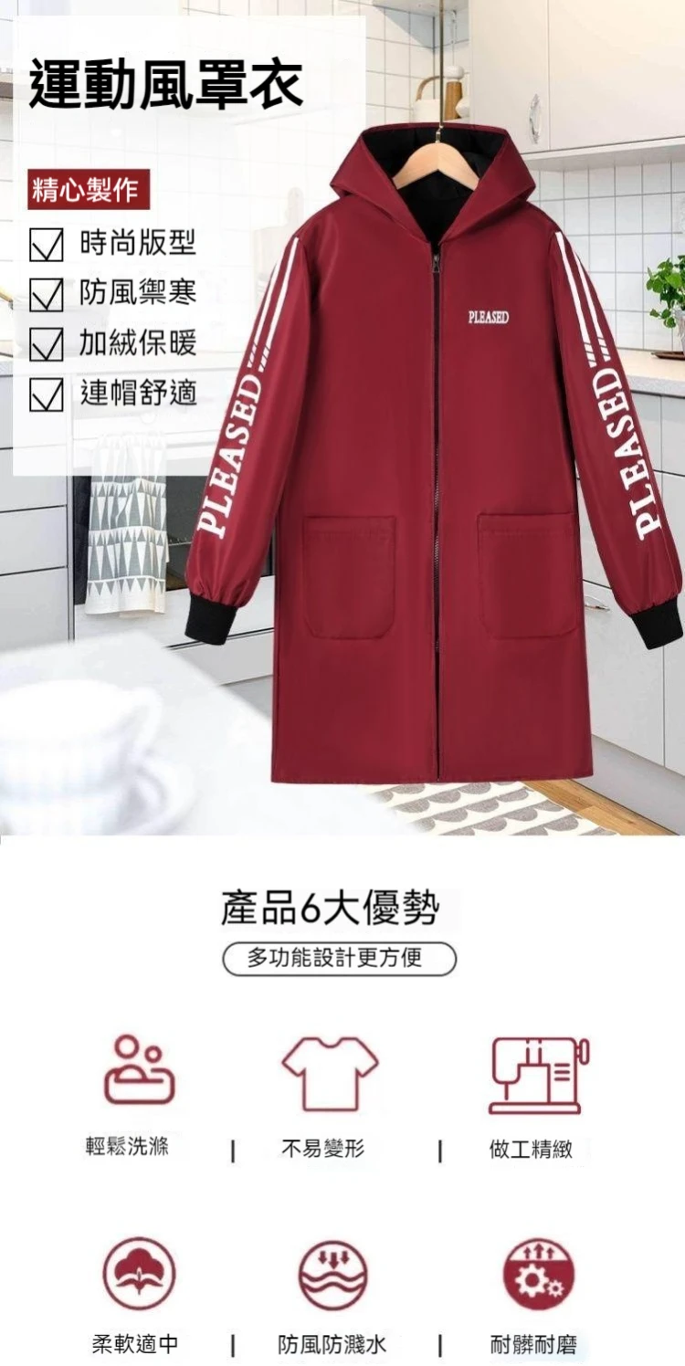 2分鐘前【防水加絨罩衣】便攜拉鏈加大帽簷,防水防污、機洗不變形【男女都可穿】防水防油,幹活不髒衣的工作好幫手,方便實用 - 新品特價!一入組NT$999