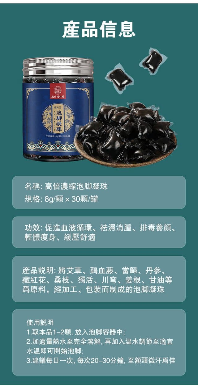 半小時前吳醫師推薦【古法泡脚凝珠】18味草本中藥萃取,8倍濃縮,古法秘制,遇水即溶,每天只需一顆,讓你泡出濕氣,清除體內毒素垃圾,告別虛胖肥腫,疏通經絡,更能使全身氣血通暢,防止靜脈曲張,泡出好身體! - 買一送一【2大瓶共60顆 NT$998】最熱銷