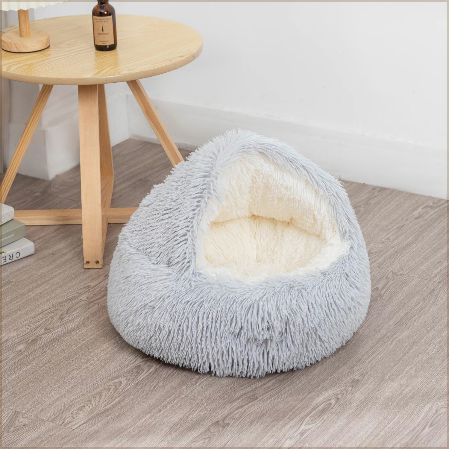 長絨毛柔軟蓬鬆,觸感極佳,像溫暖懷抱。它能鎖住熱量,為寵物禦寒。窩內空間充足,讓寵物舒展自如。底部結實,外觀精緻。易清潔打理,不易藏污,是愛寵舒適小窩。